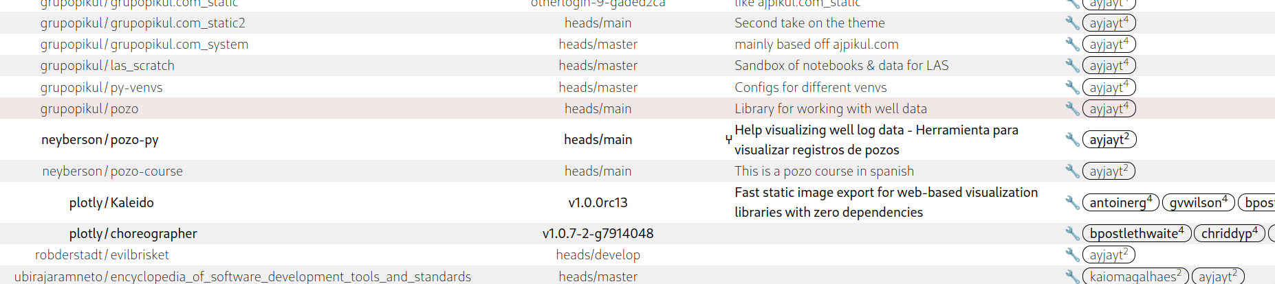 - git tags via github